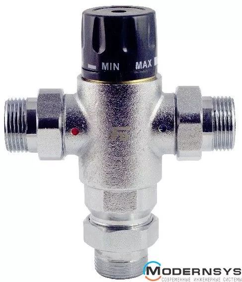 Термостатический смесительный клапан предназначен для автоматического поддержания заданной температуры горячей воды в системах горячего водоснабжения с возможностью пользовательской настройки температуры смешанной воды в интервале от 38°С до 60°С.