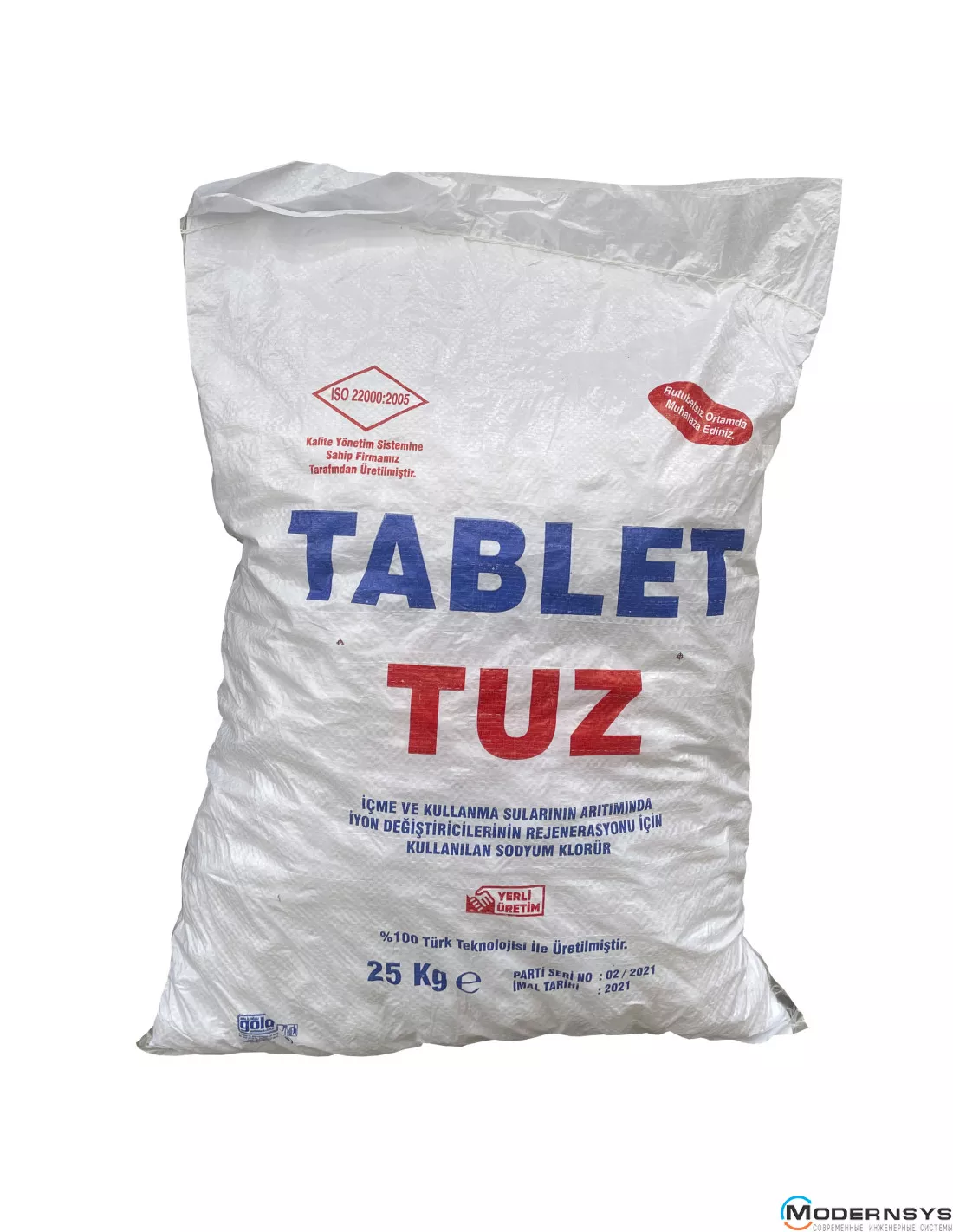 Соль таблетированная, форма – подушечка. Соль таблетированная используется как реагент для восстановления ионообменных свойств смолы в установках смягчения воды (смягчители). Приобрела широкое применение в сферах жилищно-коммунального хозяйства, а именно, котельных, системах водоочистки и водоподготовки. Также активно используется в установках для смягчения воды, бассейнах, аквапарках и автомойках. Таблетированная соль, чтобы смягчить воду, производится только из чистой соли, имеющей высокое качество - марки экстра.