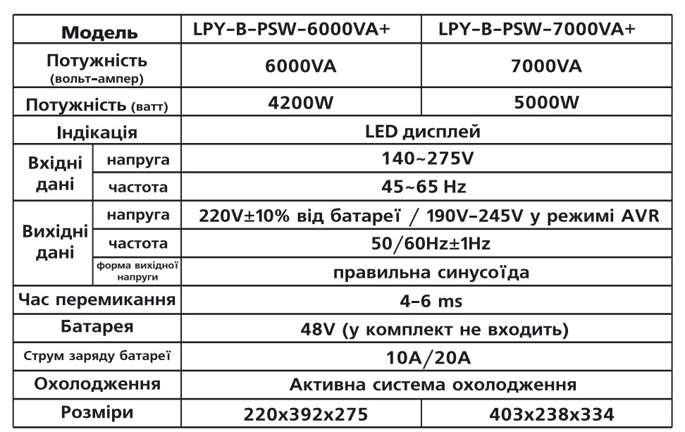 - ИБП с правильной синусоидой 48В LPY-B-PSW-6000VA+(4200Вт)10A/20A - 1 штука
