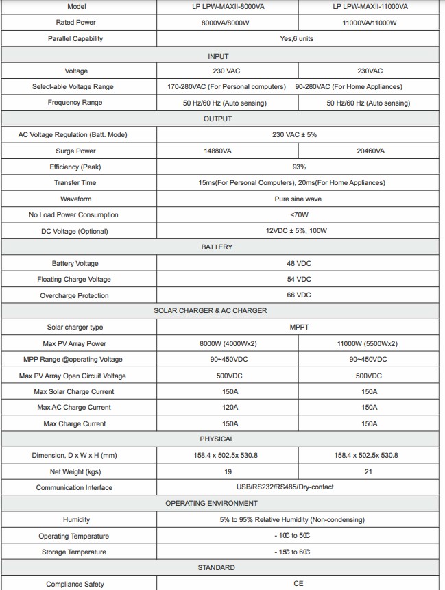 ИБП LP LPW-MAXII-8000VA (8000Вт) MPPT 150A OFF GRID - 1 шт.