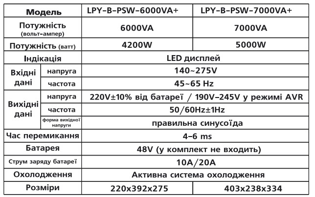 - ИБП с правильной синусоидой 48В LPY-B-PSW-6000VA+(4200Вт)10A/20A – 1 шт.