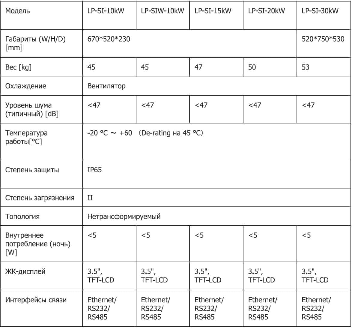 Технические характеристики: Солнечный сетевой инвертор LogicPower (Лоджик Повер) LPM-SIW-30kW