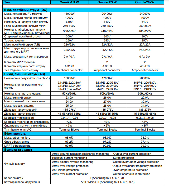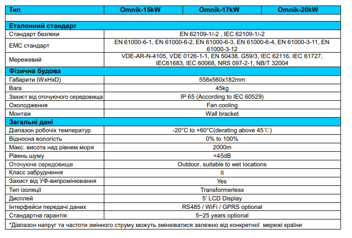 Технические характеристики: Солнечный сетевой инвертор LogicPower (Лоджик Повер) OMNIK 20kW