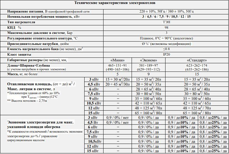 Технические характеристики: Tenko (Тэнко) Економ 7,5 кВт 380V котел электрический