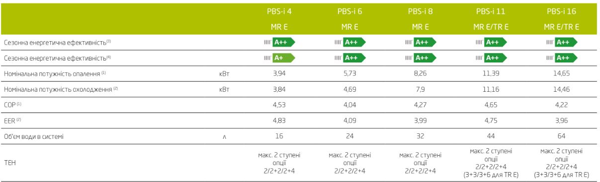 Технические характеристики для теплового насоса Baxi PBS-i MR E