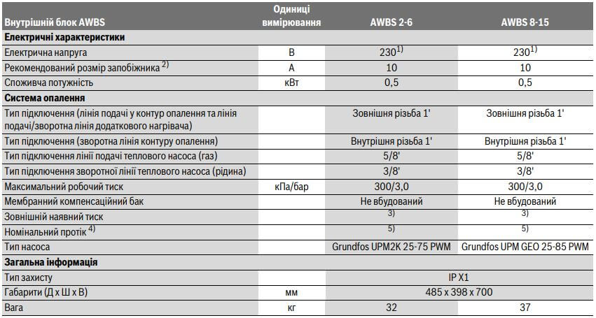Технические характеристики для тепловых насосов Bosch Compress 3000 AWBS