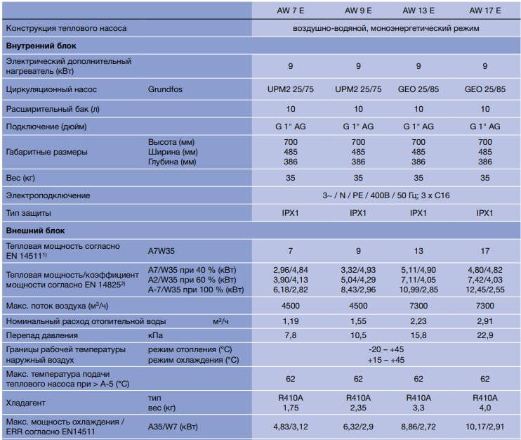 Технические характеристики для тепловых насосов Bosch Compress 7000i AW E
