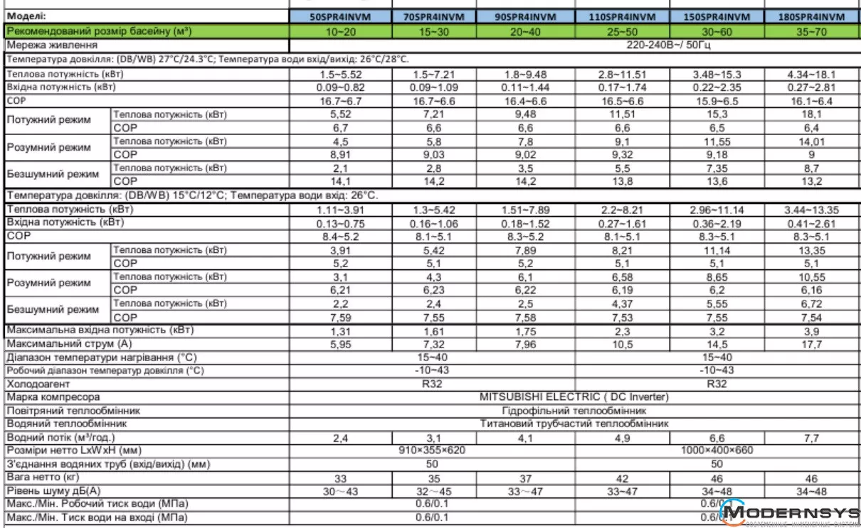 Технические характеристики: Тепловой насос для бассейна Termojet (Термоджет) 35-70м3 – 18 кВт