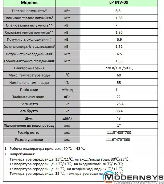 Технические характеристики: Тепловой насос инверторный воздух-вода LogicPower (Лоджик Повер) INV-9