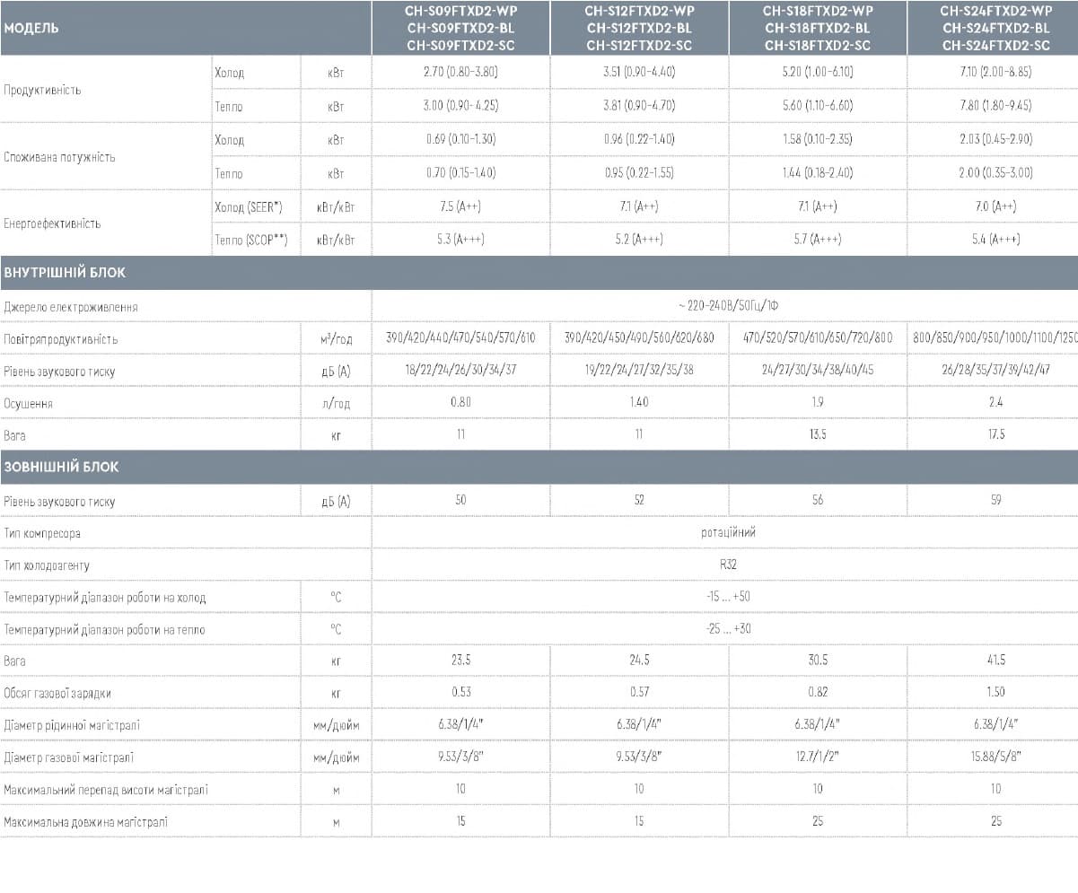 Технические характеристики: Тепловой насос кондиционер Cooper&Hunter (Купер Хантер) Daytona Black R32CH-S18FTXD2-BL