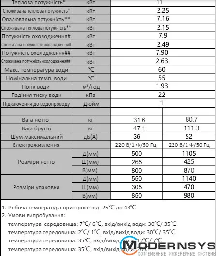 Технические характеристики: Тепловой насос воздух-вода инверторный сплит LogicPower (Лоджик Повер) SINV-11
