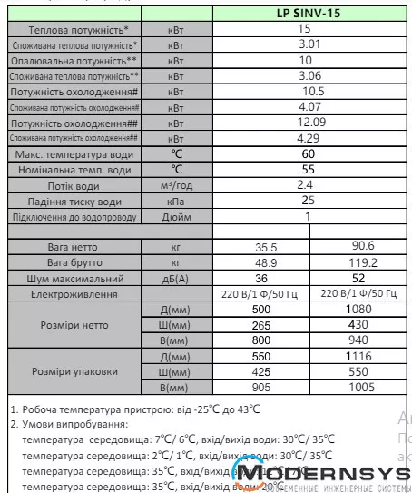 Технические характеристики: Тепловой насос воздух-вода инверторный сплит LogicPower (Лоджик Повер) SINV-15