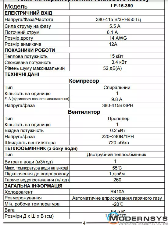 Технические характеристики: Тепловой насос воздух-вода LogicPower (Лоджик Повер)-15-380