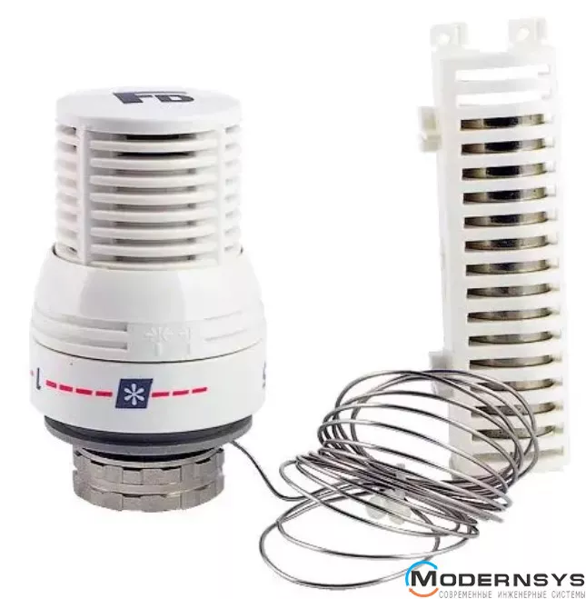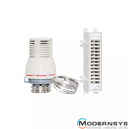 Термоголовка FADO New с выносным датчиком - предназначена для установки на регулирующий клапан радиатора, коллектора, монтажного узла. Чувствительный элемент термоголовки, наполненный толуолом и соединенный со встроенной сильфонной емкостью капиллярной трубкой длиной 2 м, монтируется на стену помещения вне зоны тепловых воздействий и сквозняков, что повышает точность поддержания температуры внутреннего воздуха. При ее изменении сильфон воздействует на шток клапана, управляя количеством протекающего теплоносителя.