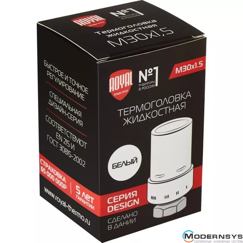 Технические характеристики: Термоголовка жидкостная Royal Thermo (Роял Термо) Design М30х1,5 (белая)