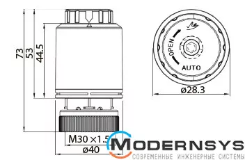 Термопривод имеет ручное управление, позволяющее открывать/закрывать термопривод при запуске/настройке системы отопления без необходимости его электрического подключения. Компактный размер обеспечивает лёгкий монтаж термопривода.