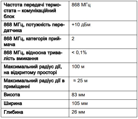 Технические характеристики для терморегулятора Vaillant Erelax