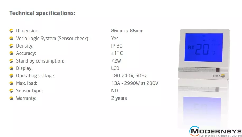 Технические характеристики: Терморегулятор Veria (Верия) Control T45