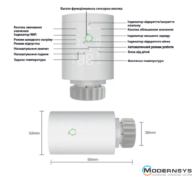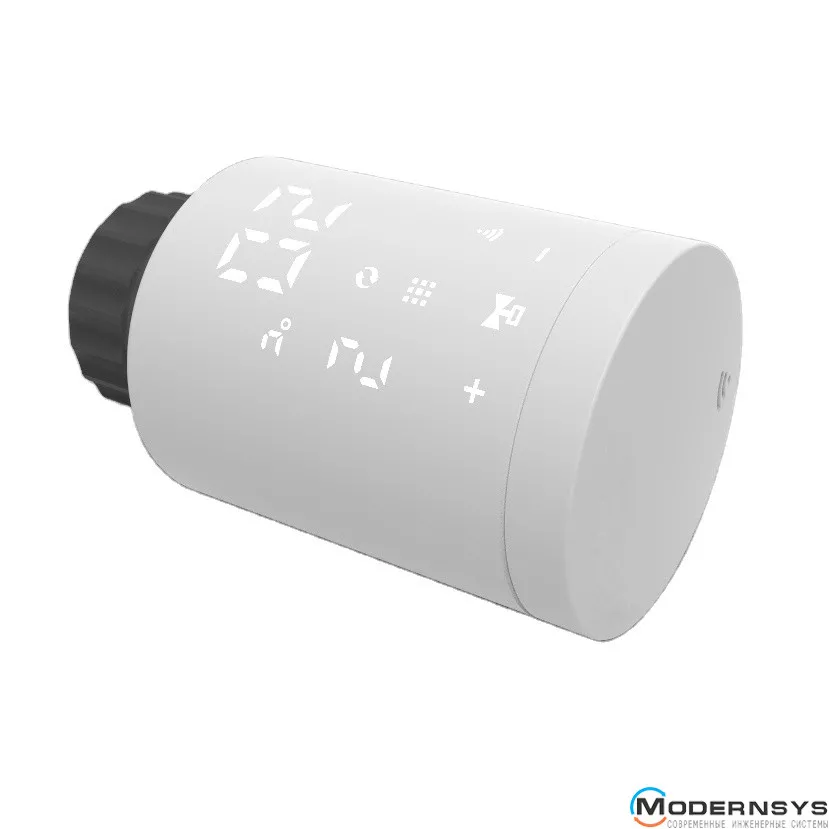 Беспроводной термостат радиаторный (EVA) работает на сменных элементах питания (батарейки), без проводов, простой в установке, предназначен для контроля температуры водяного радиатора, обеспечивает комфортную температуру, уменьшает потери энергии, экономит расходы на отопление. Термостат имеет встроенный ZigBee® (TUYA) модуль беспроводной связи с низким энергопотреблением и LCD дисплей. Он может использоваться индивидуально или может быть добавлен к TuyaSmart APP, что сделает его «умным» термостатом.
