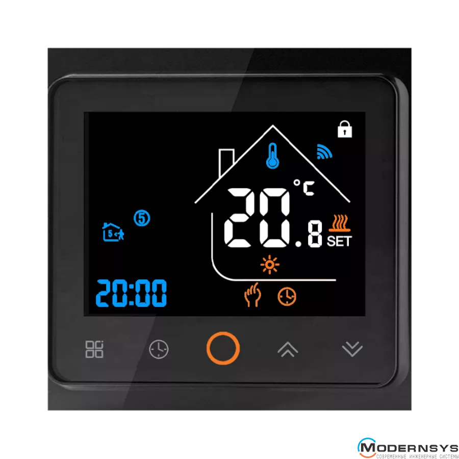 - Множество настроек: температуры, времени, временных программ, программ на дни недели, установка блокировки, переключение режимов, энергосбережение и т.д.