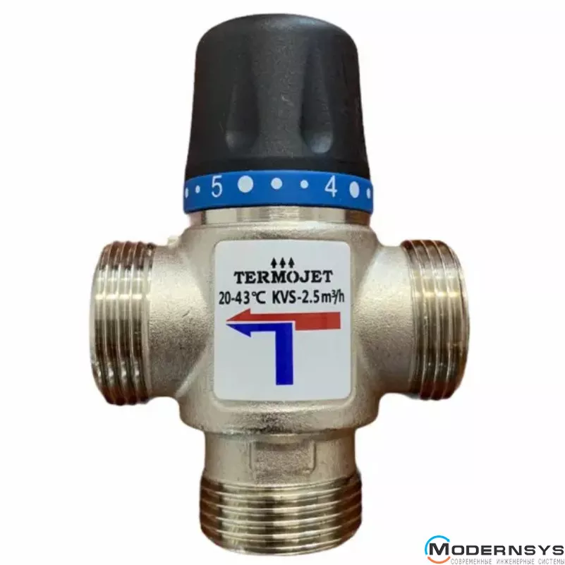Технические характеристики: Термостатический трехходовой Termojet (Термоджет) 1" Наружная резьба, kvs-2.5, temp - 20-43°C