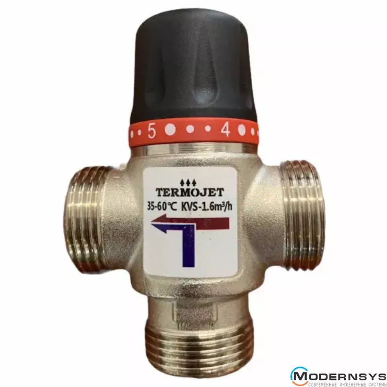 Технические характеристики: Термостатический трехходовой Termojet (Термоджет) 1" Наружная резьба, kvs-1.6, temp - 35-60°C
