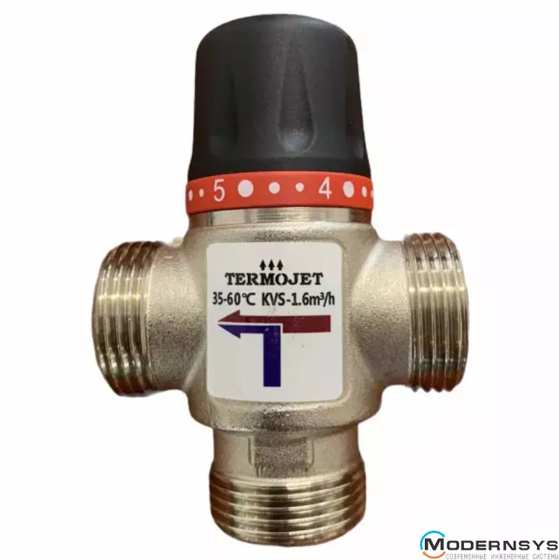 Технические характеристики: Термостатический трехходовой Termojet (Термоджет) 3/4" Наружная резьба, kvs-1.6, temp - 35-60°C