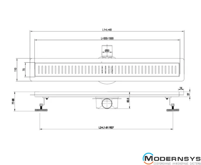 Трап также имеет продуманные регулируемые ножки с возможностью регулировки высоты от 77 до 96 мм, которые позволяют быстро и надежно выравнивать лоток в горизонтальной плоскости, обеспечивая устойчивость после установки.
