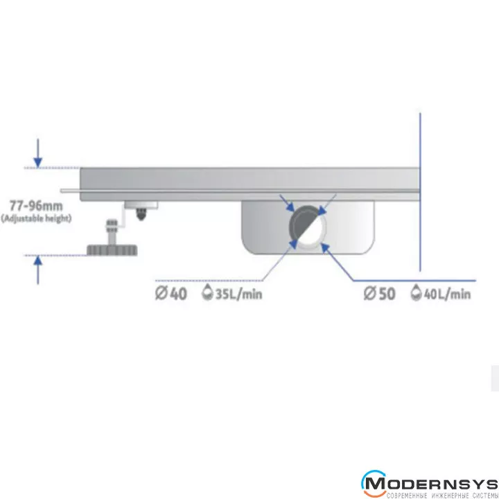 Трап ASG также имеет продуманные регулируемые ножки с возможностью регулировки высоты от 77 до 96 мм, которые позволяют быстро и надежно выравнивать лоток в горизонтальной плоскости, обеспечивая устойчивость после установки.