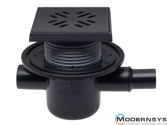 Трап HL для внутренних помещений DN50 горизонтальный с дополнительным отверстием DN40/50, 150х150мм/ (HL300G)