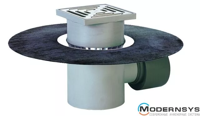 Трап HL для внутренних помещений DN75/110 горизонтальный с битумным полотном, 147х147мм/138х138 синт (HL72.1H)