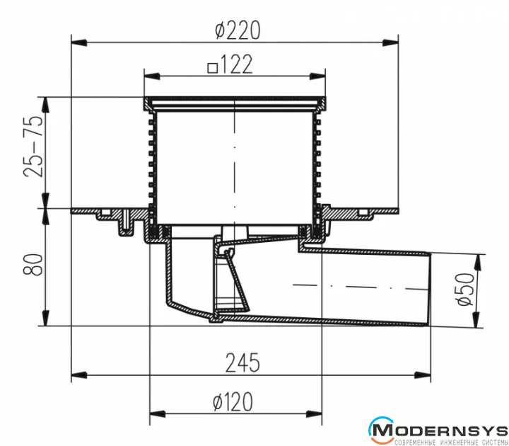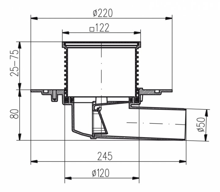 Технические характеристики: Трап с горизонтальным выпуском MCH (МЦШ) 381A