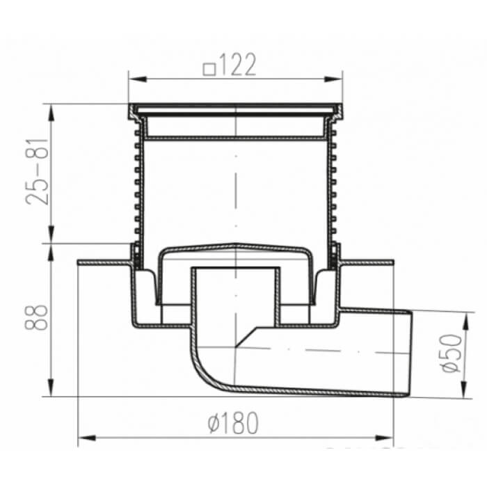 Технические характеристики: Трап с горизонтальным выпуском MCH (МЦШ) F 425 NXL сухой сифон