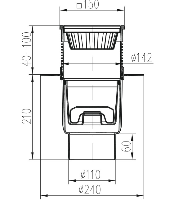 Технические характеристики: Трап с вертикальным выпуском MCH (МЦШ) 827 SN
