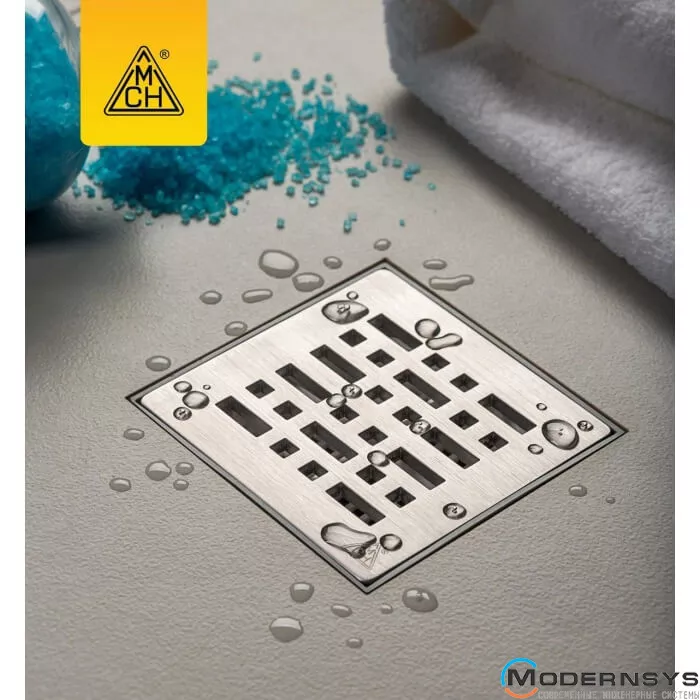 Сухой сифон трапа защищает помещение от поступления неприятных запахов из канализации, так как перекрывает отверстие слива когда высыхает вода в сифоне. Корпус трапа выполнен из УФ-модифицированного полипропилена, а решетка из нержавеющей стали, имеющей толщину 5 мм. Материал высококачественный и имеет хорошие показатели стойкости и прочности.