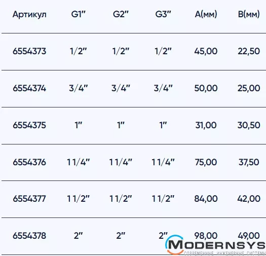 Название товара КОД Тип резьбы Диаметр резьбы Цена Тройник 1/2" ВНН никель ASG 000076572120 грн Тройник 1/2" ВНВ никель ASG 000076571116 грн Тройник 1/2" ВВВ никель ASG 00007656498 грн Тройник редукционный 3/4"х1/2"х3/4"никель ASG 000076575138 грн Тройник 3/4" ВВВ никель ASG 000076565131 грн Тройник 1/2" ННН никель ASG 000076574103 грн Тройник 1" ВВВ никель ASG 000076566252 грн Тройник редукционный 1"х1/2"х1" никель ASG 000076576210 грн Тройник 2" ВВВ никель ASG 000076569910 грн Тройник 1 1/4" ВВВ никель ASG 000076567463 грн Тройник 1/2" НВН никель ASG 000076573103 грн Тройник 1/2" ВВН никель ASG 000076570113 грн Тройник 1 1/2" ВВВ никель ASG 000076568567 грн Тройник редукционный 1"х3/4"х1" никель ASG 000076577231 грн