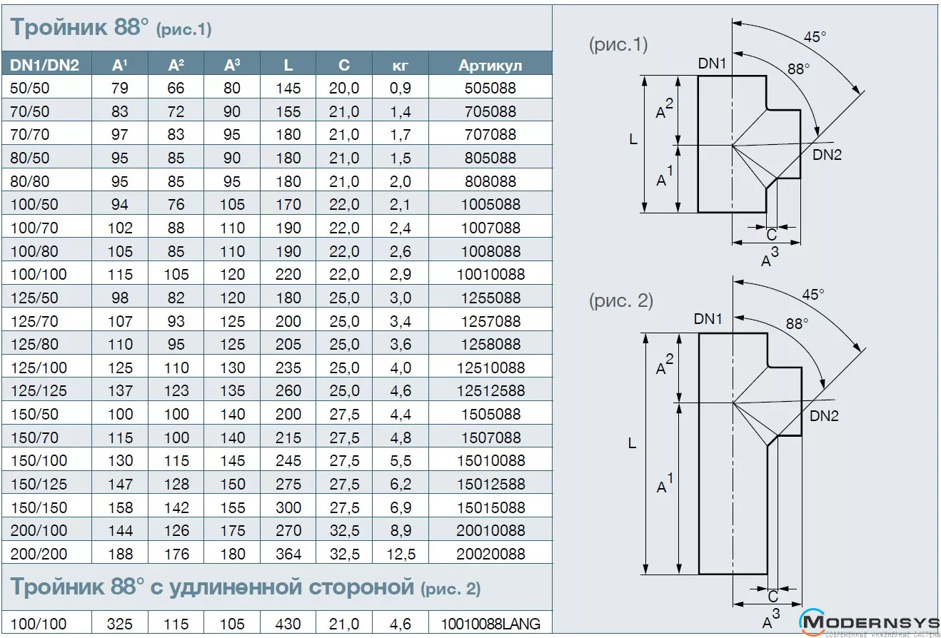 Тройник 88° - безраструбный фитинг для монтажа трубопроводов под углом 88 градусов.