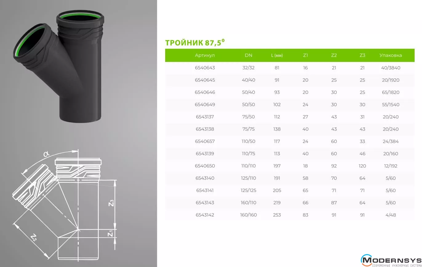 Технические характеристики: Тройник канализационный ASG (АСГ) HTR 110х110x87,5°