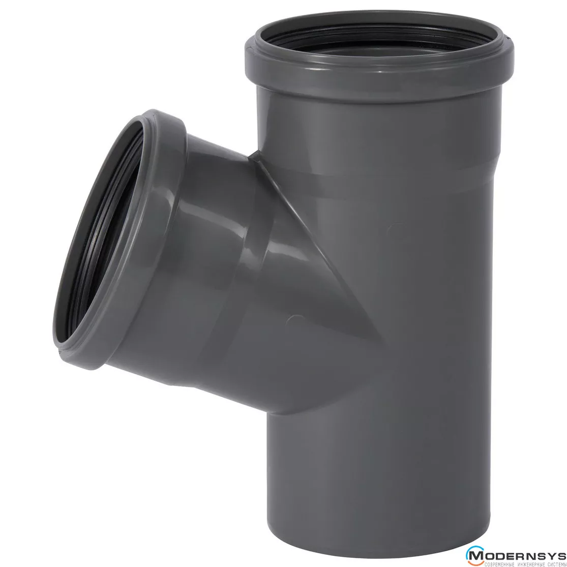 Тройник канализационный Ostendorf HT-Safe 110/110*45˚, Вид канализации: Внутренняя, Тип канализации: Простая, Градус (град.): 45, Модификация: 110/110х45, Цвет: Темно-серый, Диаметр (мм): 100, Материал: Полипропилен PPR, фото Тройник канализационный Ostendorf HT-Safe 110/110*45˚