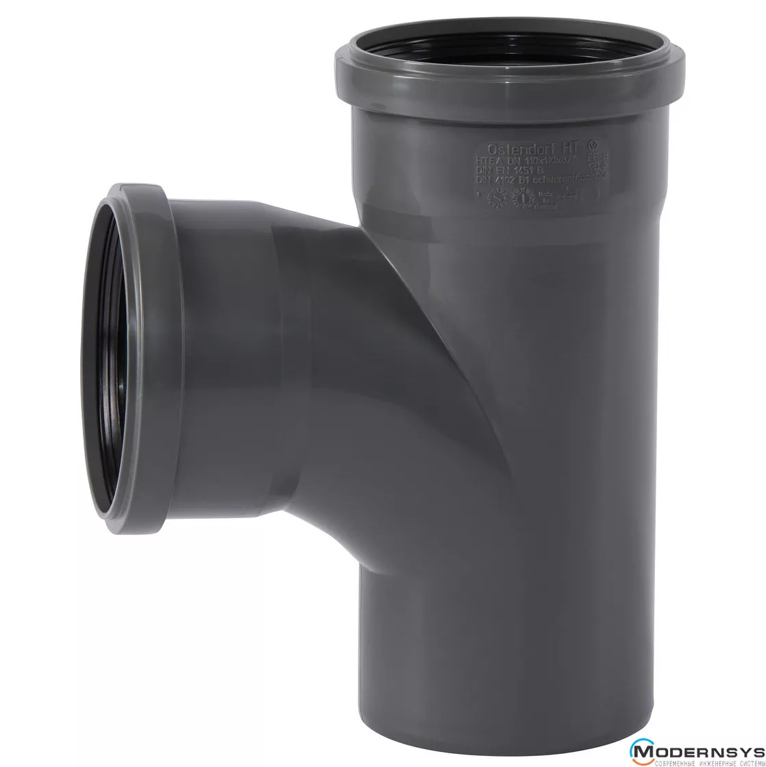 Тройник канализационный Ostendorf HT-Safe 110/75*87˚, Вид канализации: Внутренняя, Тип канализации: Простая, Градус (град.): 90, Модификация: 110/75х87, Цвет: Темно-серый, Диаметр (мм): 100, Материал: Полипропилен PPR, фото Тройник канализационный Ostendorf HT-Safe 110/75*87˚