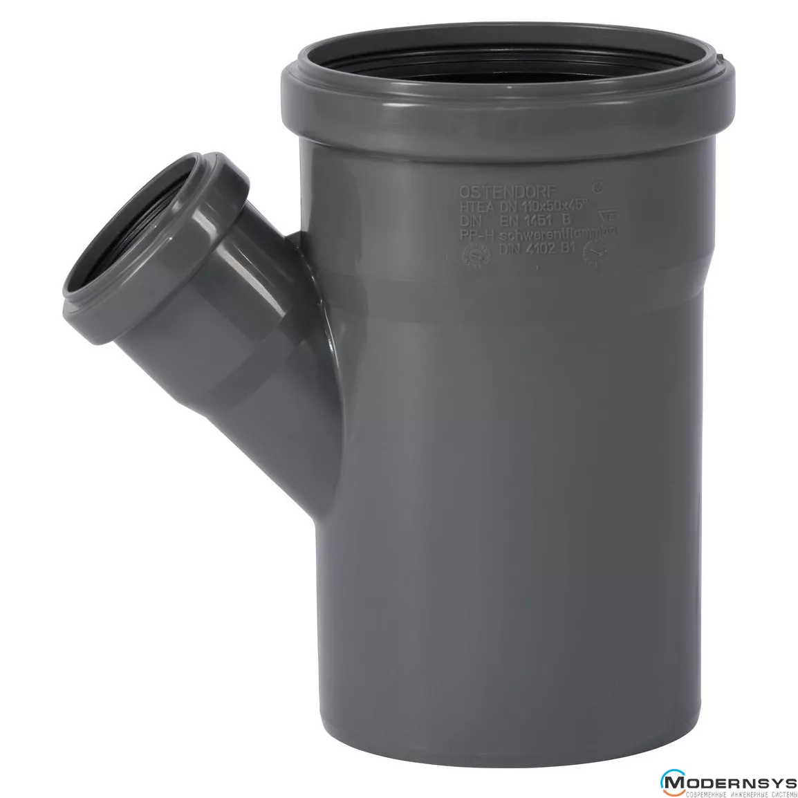 Тройник канализационный Ostendorf HT-Safe 110/50*45˚, Вид канализации: Внутренняя, Тип канализации: Простая, Градус (град.): 45, Модификация: 110/50х45, Цвет: Темно-серый, Диаметр (мм): 100, Материал: Полипропилен PPR, фото Тройник канализационный Ostendorf HT-Safe 110/50*45˚