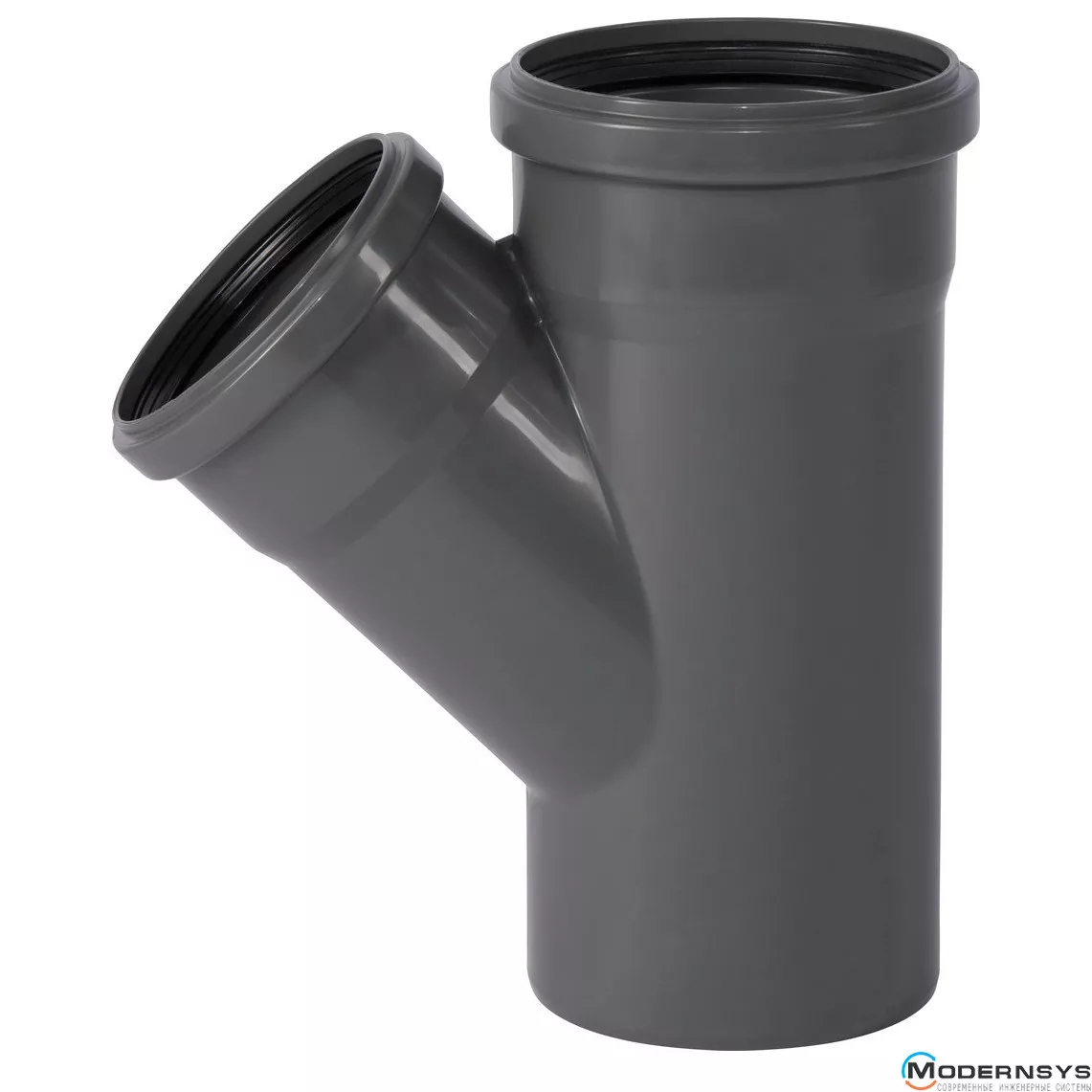 Тройник канализационный Ostendorf HT-Safe 125/125*45˚, Вид канализации: Внутренняя, Тип канализации: Простая, Градус (град.): 45, Модификация: 125/125х45, Цвет: Темно-серый, Диаметр (мм): 125, Материал: Полипропилен PPR, фото Тройник канализационный Ostendorf HT-Safe 125/125*45˚