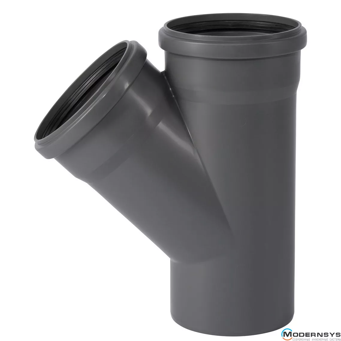 Тройник канализационный Ostendorf HT-Safe 125/125*45˚, Вид канализации: Внутренняя, Тип канализации: Простая, Градус (град.): 45, Модификация: 125/125х45, Цвет: Темно-серый, Диаметр (мм): 125, Материал: Полипропилен PPR, фото Тройник канализационный Ostendorf HT-Safe 125/125*45˚