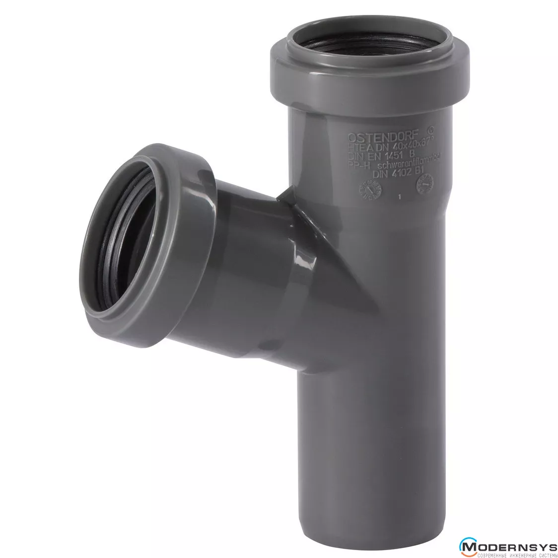 Тройник канализационный Ostendorf HT-Safe 50/40*67˚, Вид канализации: Внутренняя, Тип канализации: Простая, Градус (град.): 67, Модификация: 50/40х67, Цвет: Темно-серый, Диаметр (мм): 50, Материал: Полипропилен PPR, фото Тройник канализационный Ostendorf HT-Safe 50/40*67˚