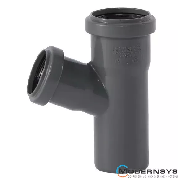 Тройник канализационный Ostendorf HT-Safe 110/75*87˚, Вид канализации: Внутренняя, Тип канализации: Простая, Градус (град.): 90, Модификация: 110/75х87, Цвет: Темно-серый, Диаметр (мм): 100, Материал: Полипропилен PPR, фото Тройник канализационный Ostendorf HT-Safe 110/75*87˚