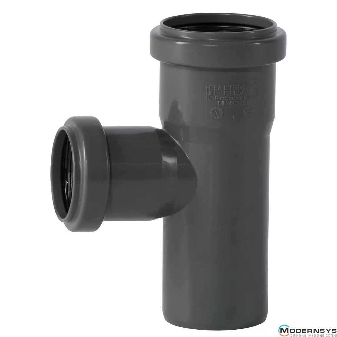 Тройник канализационный Ostendorf HT-Safe 110/50*87˚, Вид канализации: Внутренняя, Тип канализации: Простая, Градус (град.): 90, Модификация: 110/50х87, Цвет: Темно-серый, Диаметр (мм): 100, Материал: Полипропилен PPR, фото Тройник канализационный Ostendorf HT-Safe 110/50*87˚