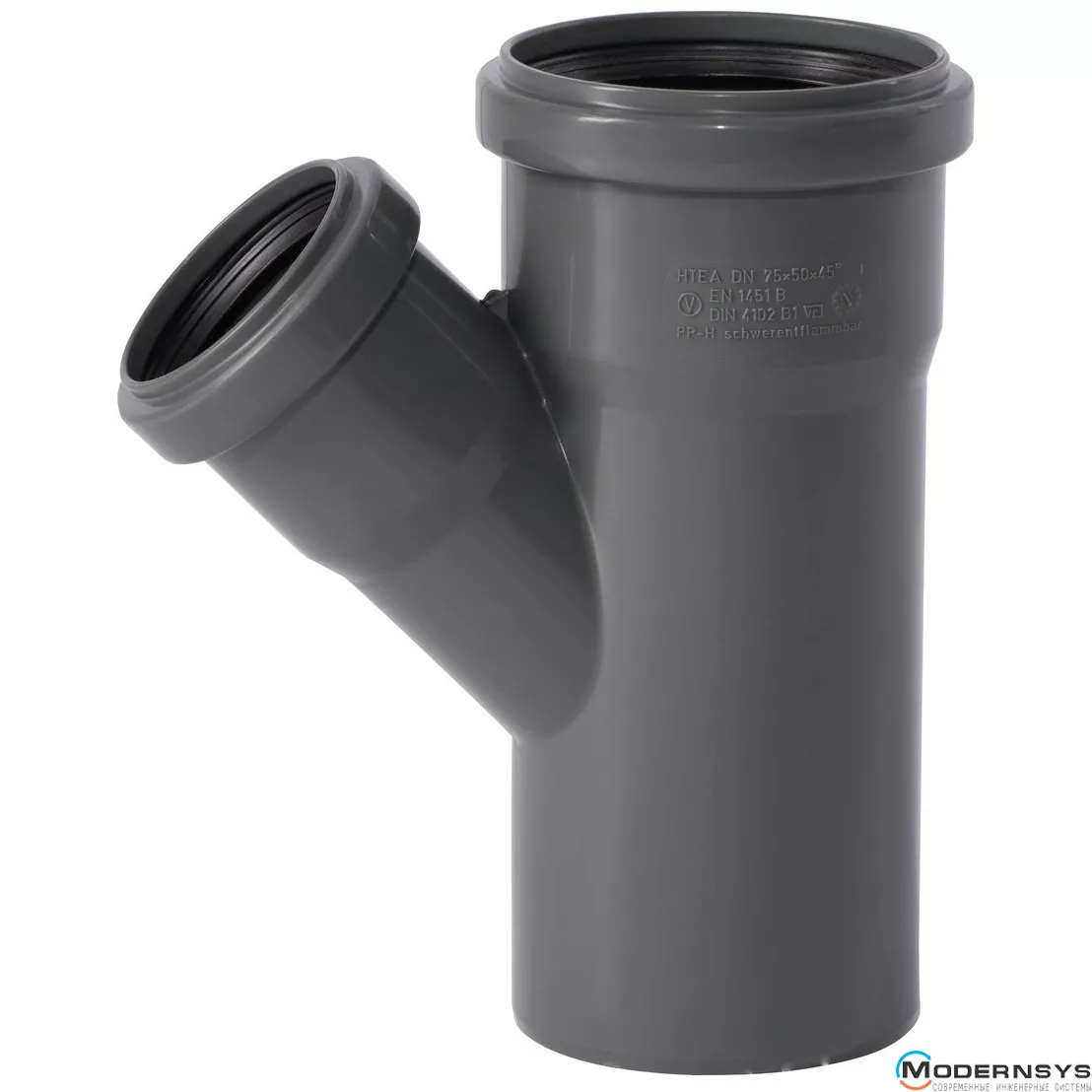Тройник канализационный Ostendorf HT-Safe 110/50*45˚, Вид канализации: Внутренняя, Тип канализации: Простая, Градус (град.): 45, Модификация: 110/50х45, Цвет: Темно-серый, Диаметр (мм): 100, Материал: Полипропилен PPR, фото Тройник канализационный Ostendorf HT-Safe 110/50*45˚