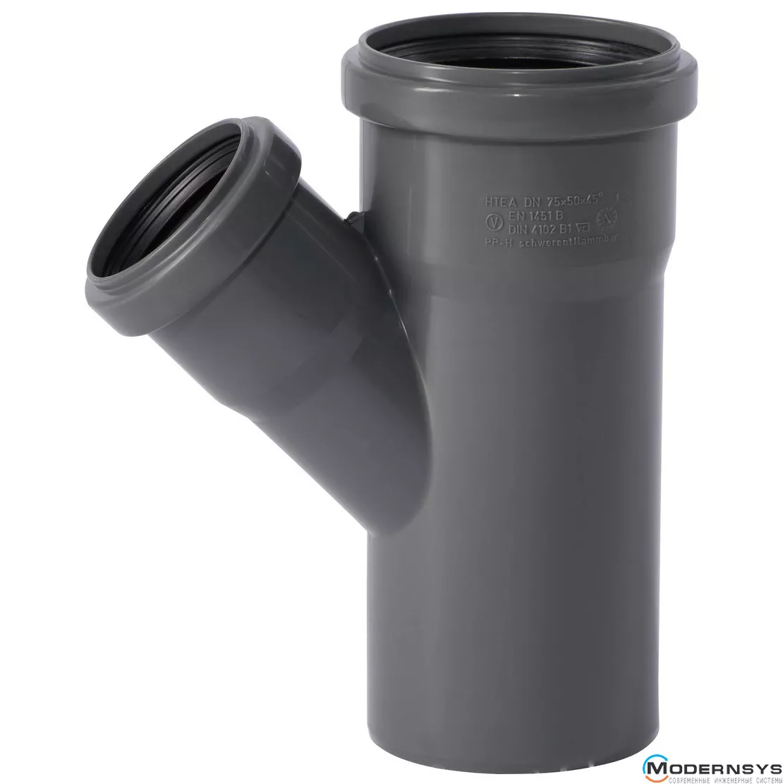 Тройник канализационный Ostendorf HT-Safe 110/50*45˚, Вид канализации: Внутренняя, Тип канализации: Простая, Градус (град.): 45, Модификация: 110/50х45, Цвет: Темно-серый, Диаметр (мм): 100, Материал: Полипропилен PPR, фото Тройник канализационный Ostendorf HT-Safe 110/50*45˚