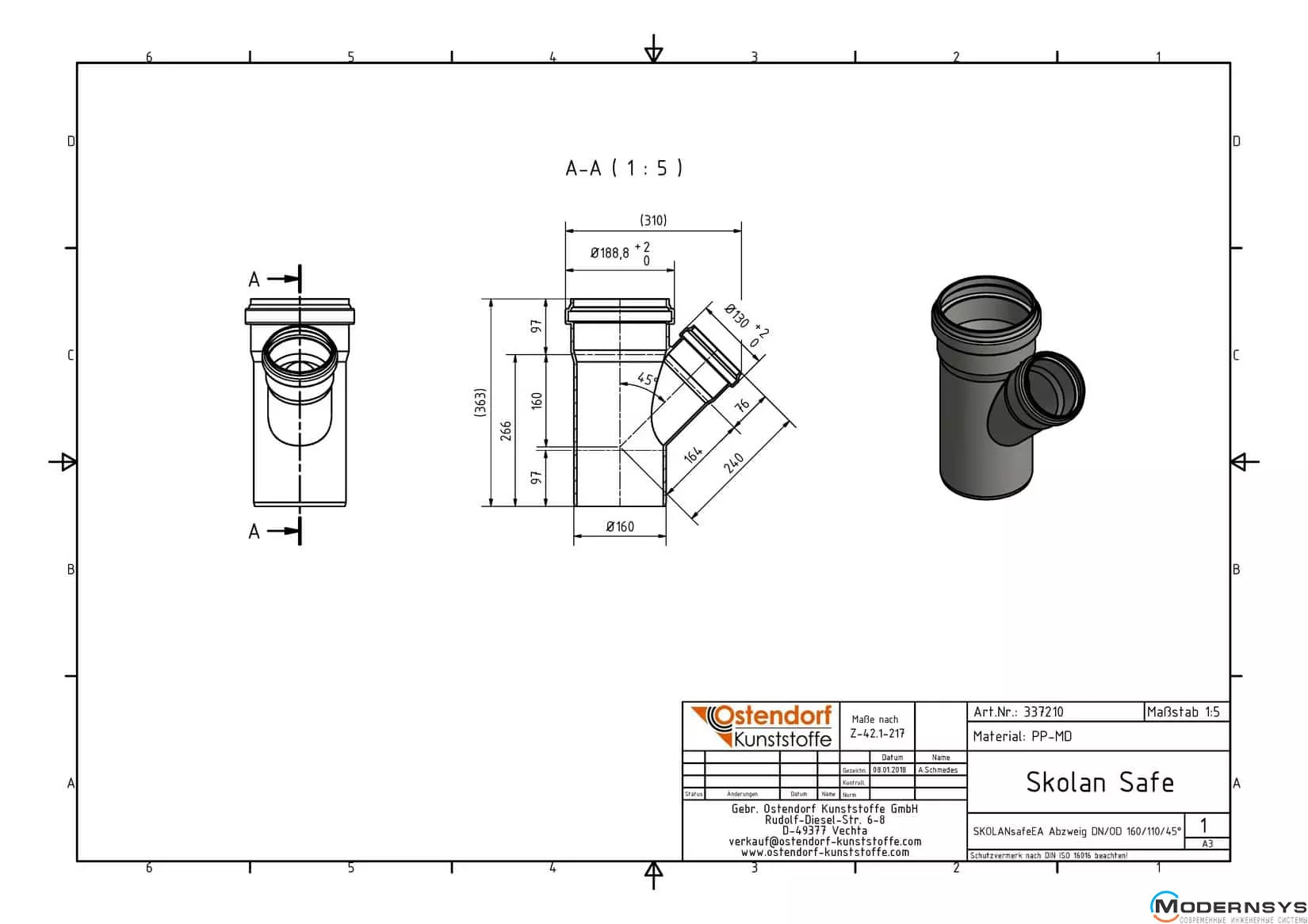 Тройник канализационный Ostendorf Skolan db 110/110х45