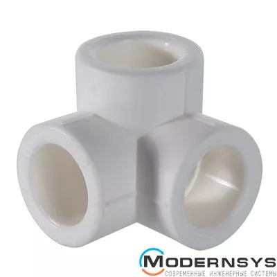 Тройник полипропиленовый двухплоскостной для разветвления полипропиленового трубопровода в двух плоскостях (тройник двухплоскостной). Монтаж производится методом раструбной сварки. Свариваемые поверхности – внутренние. Серия включает в себя фитинги с условным диаметром 20, 25 и 32 мм.